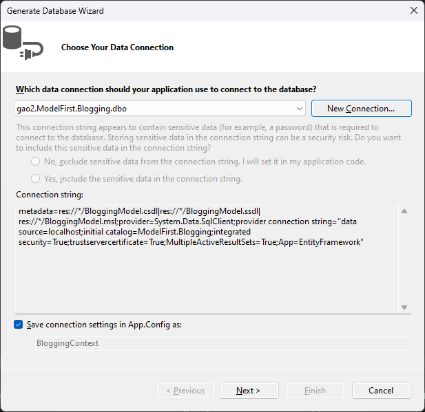 - you will be prompted to specify the database to connect to, specify LocalDB or SQL Server Express, depending on which version of Visual Studio you are using