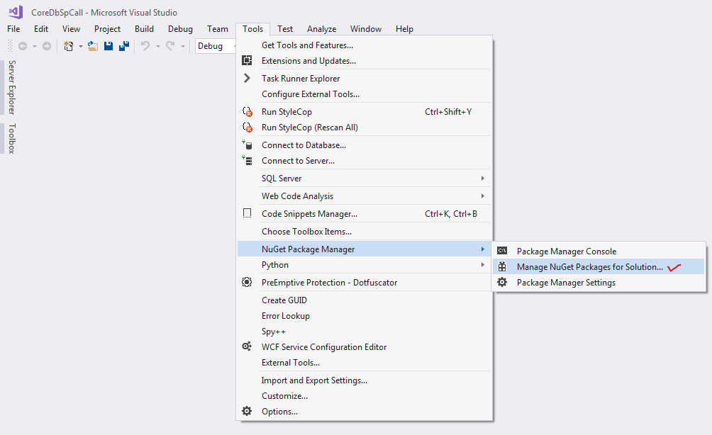 From Visual Studio IDE, click Tools->NuGet Package Manager->Manage NuGet Packages for Solution