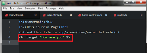 - The above code will create a target variable and assign the text ‘How are you’ in a non-out printing ERB tag.