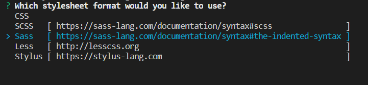 Here you need to choose your style sheet from css, scss , sass , less , stylus . Choose as per your need.