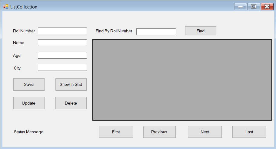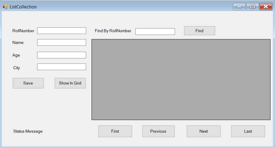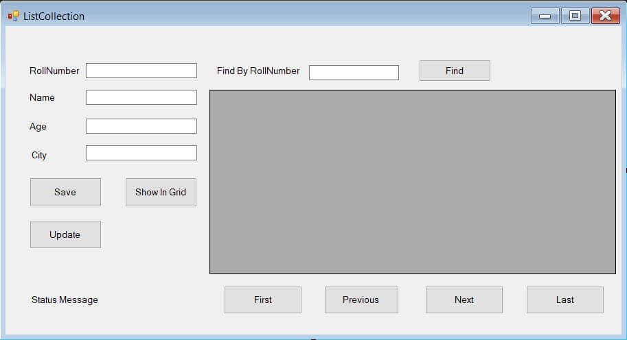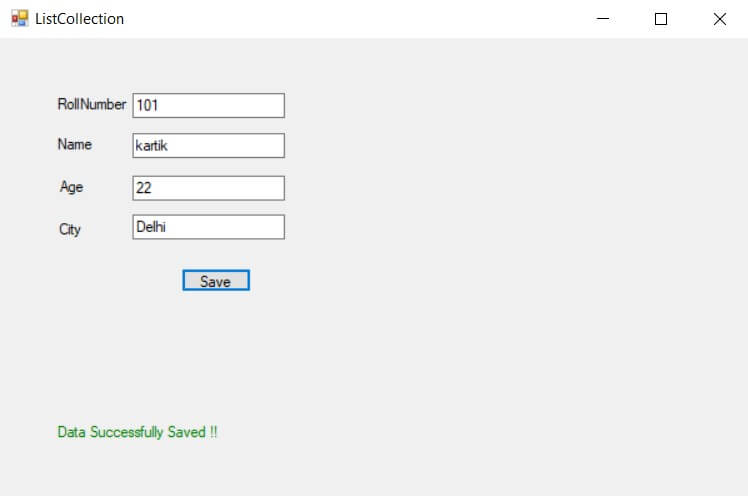 List is a collection used for dynamic memory allocation as you see in ListCollection Application above. You can access List values using index. In List Collection we can store, find, update, Delete and perform other functionalities. You can also show DataGridView Control to show List values at Run time even you can use other Controls also like MessageBox as per your need. In Generic type of List we can use various type of data.