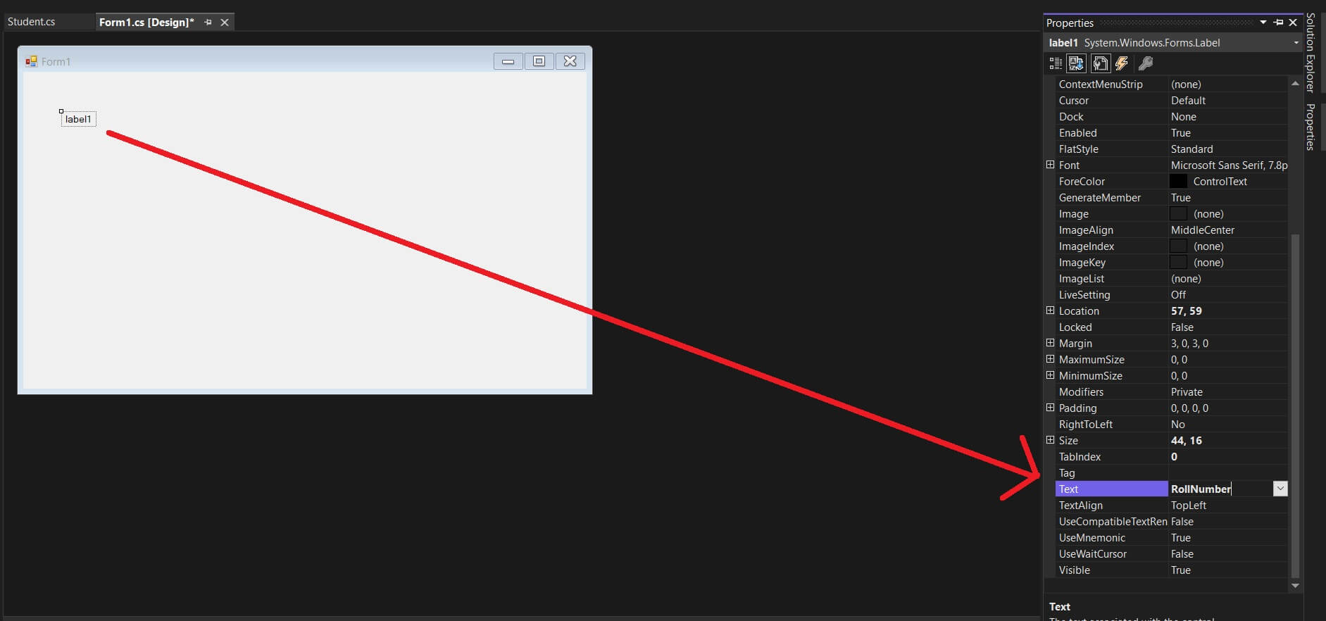 - Add a label, Right Click -> Properties Text - Find By RollNumber.