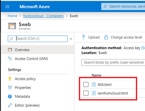 For this article, will upload a simple HTML file name Iamfromcloud.html