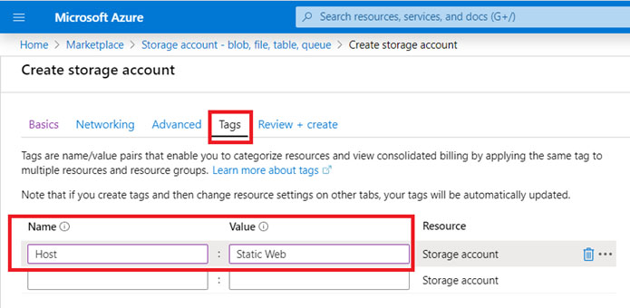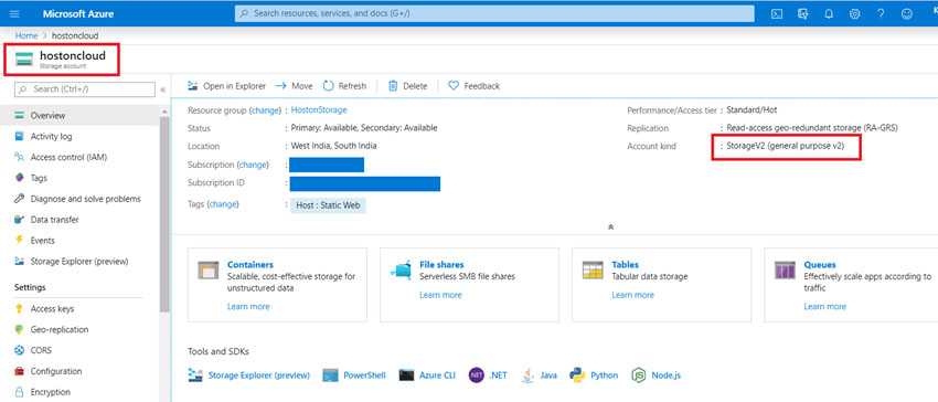 - Enter Resource Group name from existing or create new. In this article, have created a new RG name HostonStorage.