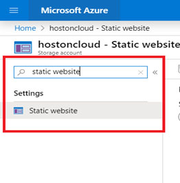 - In the storage resource page as seen above, at the left-hand corner blade, at the top we have a search box. Enter, ‘Static Website’ in the text box, and click on the resulted option.