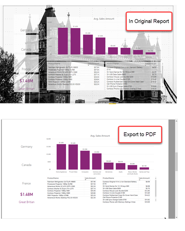 This is how the "Export to PDF" option works for Power BI Desktop.