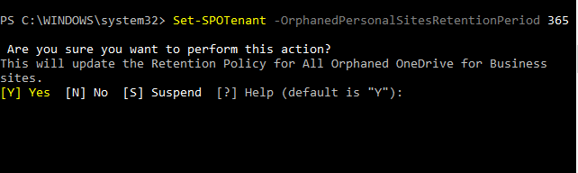 Set-SPOTenant -OrphanedPersonalSitesRetentionPeriod 365