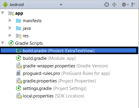 Locate the Gradle Scripts>>Build. Gradle 1.