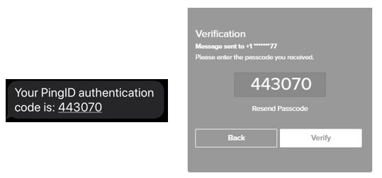 Enter the code received on your mobile device from the SMS text. Click Verify to continue,
