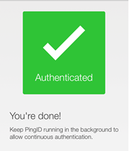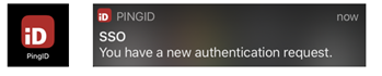 During the PingID authentication process, the PingID service sends an authentication request to the user's mobile device. No password response is required: the user just swipes to authenticate.