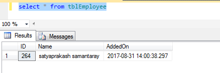Here I have added entityname "SignalRDBEntities" and using autogenerated class tblEmployee object model we added data on datetime when you insert data and for entity class object we inserted data on remaining table columns.