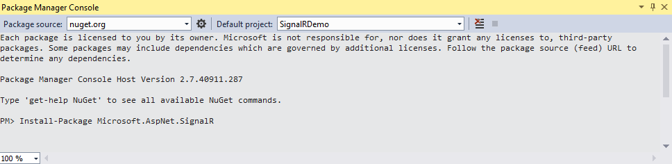 - PM> Install-Package Microsoft.AspNet.SignalR
