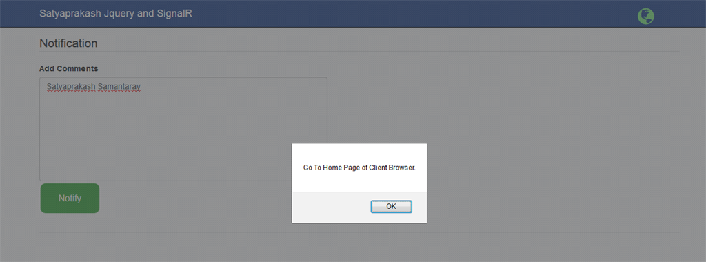 You can insert the data via one browser and get the updated notification on the homepage in the other browser also. The result will be shown in the same instance and different instance of same browser or different browser.