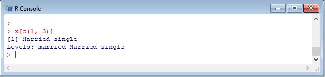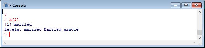 The elements of a factor can be accessed in the same way as those of a vector. For example, Here is our factor x.