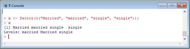 - > x <- factor(c("Married", "married", "single", "single"));