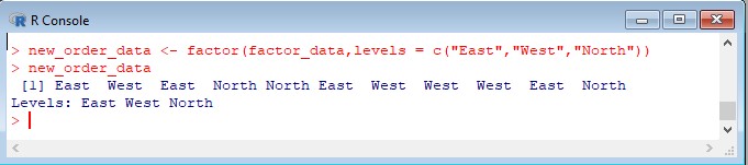 - > new_order_data <- factor(factor_data,levels = c("East","West","North"))