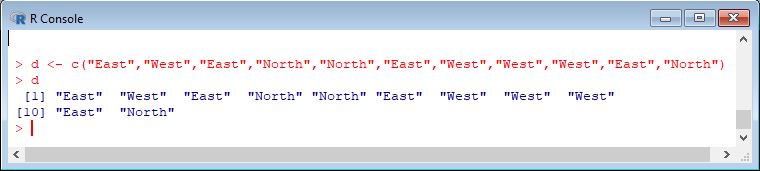 - > d <- c("East","West","East","North","North","East","West","West","West","East","North")