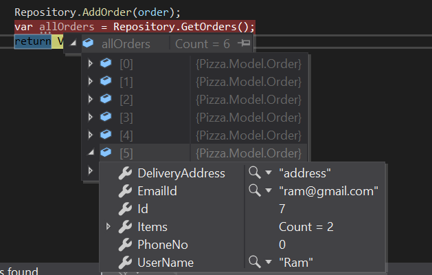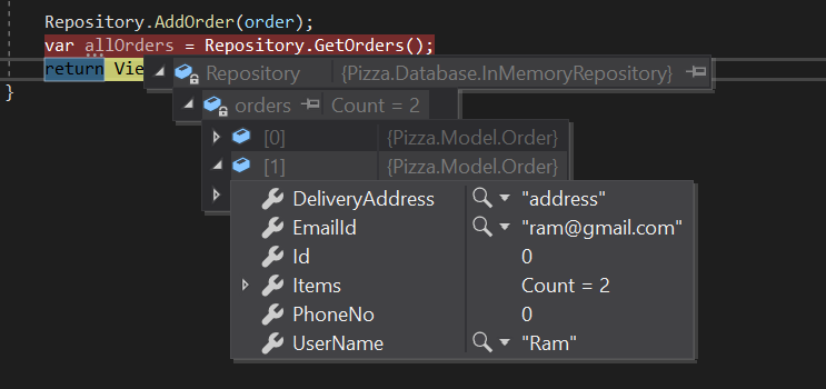 When we point our application to InMemoryRepository, application will store order details in memory. We aren't going to use any external database provider and hence the name InMemoryRepository.