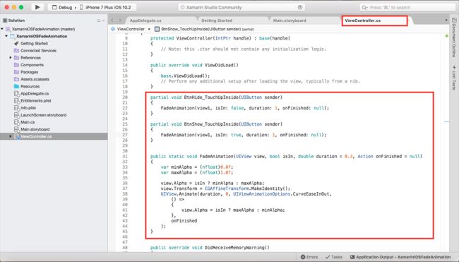 The steps given below are required to be followed in order to use Fade In Fade Out animation in Xamarin iOS, using Xamarin Studio.
