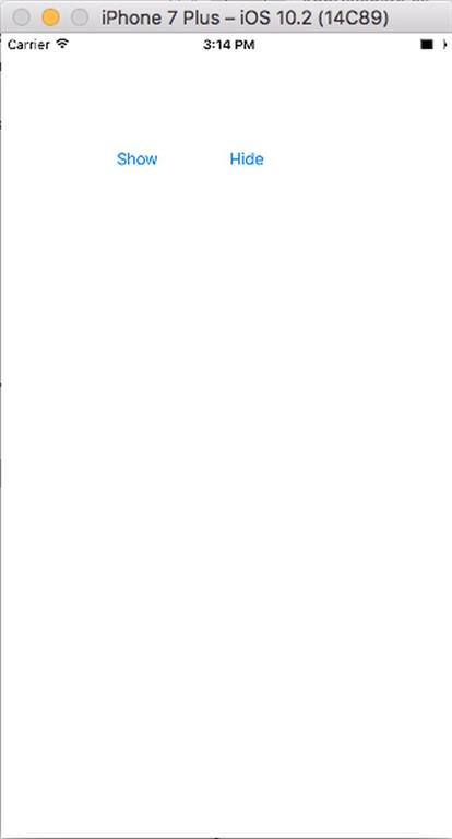 After a few seconds, the app will start running on your iPhone simulator. You will see your app working successfully. You can click Show Button and Fade in animation is working successfully.