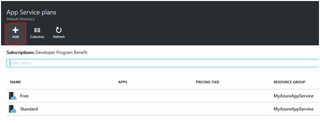 Navigate to Azure Management Portal and click on “App Service Plan”.