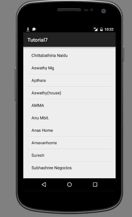 Now run the app and all your contacts will be shown in the listview of your application.