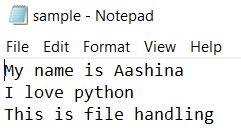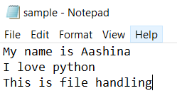 In this above example, we have created a simple notepad file and named it as sample.txt