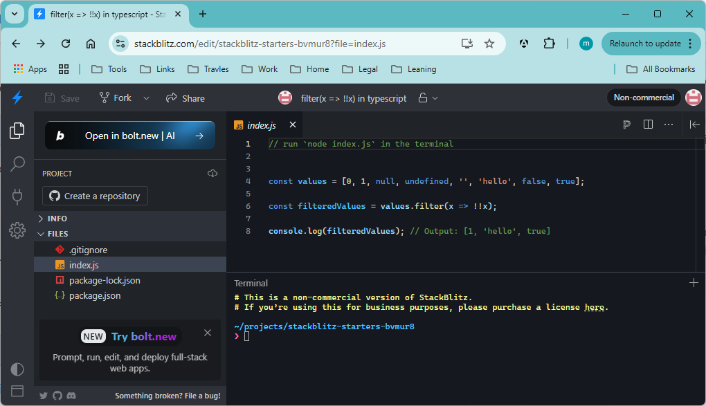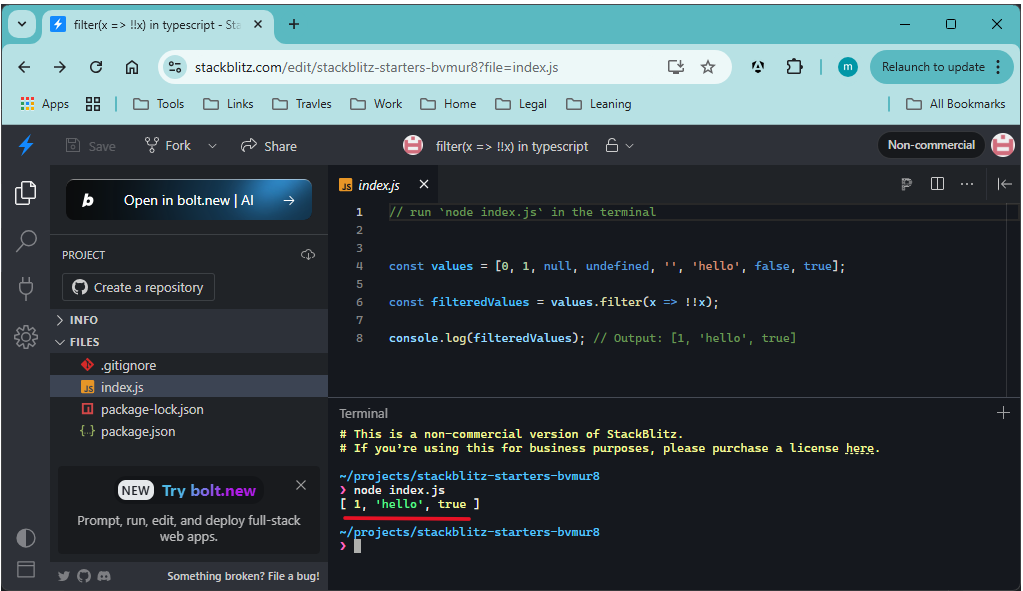 Go to: filter(x => !!x) in typescript - StackBlitz