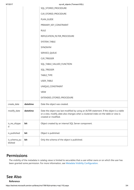 Filter By Any Date.- select * from sys.all_objects where type='P ' and Convert(date, create_date) >= Convert(date, '2017-09-06')