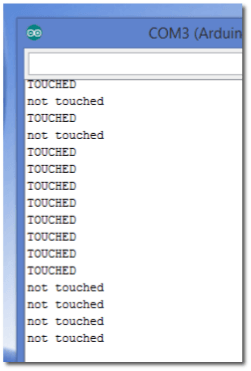 - If the Sensor Board is dry; "case 2" will be activated and "Not touched" will be sent to the serial monitor.
