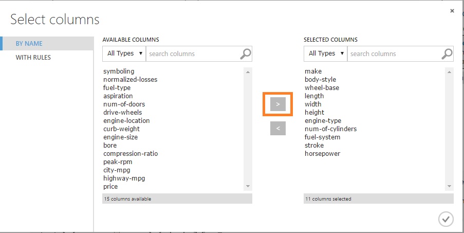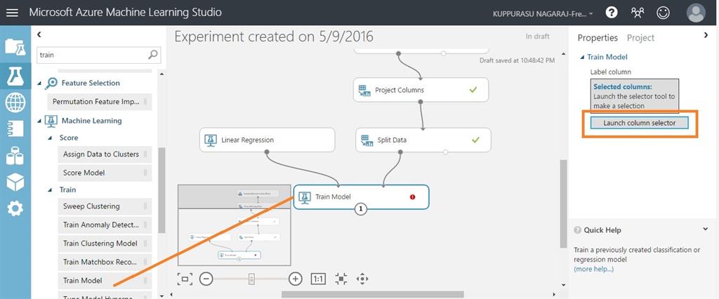 Select the Train Model module, click Launch column selector in the Properties option, and then select the price column. This is the value that our model is going to predict then click Run the experiment.