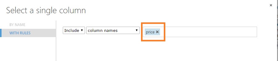 Select columns window, In the column selector, select no columns to begin with, and then select Include and column names in the filter row. Select our list of column names.
