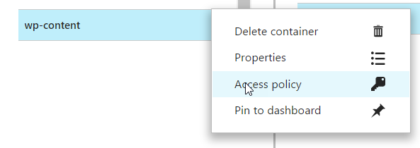 According to Microsoft, Access Policy specifies whether the data in the container may be accessed publicly. By default, container data is private to the account owner. Use ‘Blob’ to allow public read access for blobs. Use ‘Container’ to allow public read and list access to the entire container.