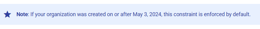 - Search for "Disable Service Account Key Creation" (iam.disableServiceAccountKeyCreation).