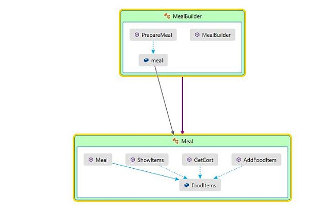 Below is the "Code Map" diagram of adding food items for ordering using Builder Design Pattern,