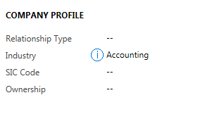 We need to bind this code on onload of an account entity and onchange of the industry field. Once we save and publish our changes, the user will select an industry and it will show an information icon, as shown below.
