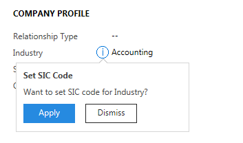 If the user will click on Apply button, it will set SIC code, which is based on our JavaScript logic, as shown below.