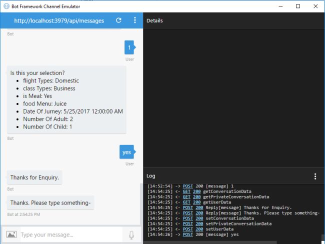 5.       await Conversation.SendAsync(activity, () => FlightBotDialog.dialog);