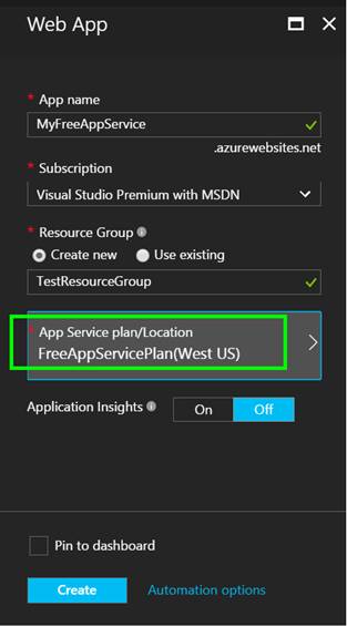 Verify details and click “Create”. Your Free App Service deployment will start and you will notice that your “MyfreeAppService” appears under “App Services”.