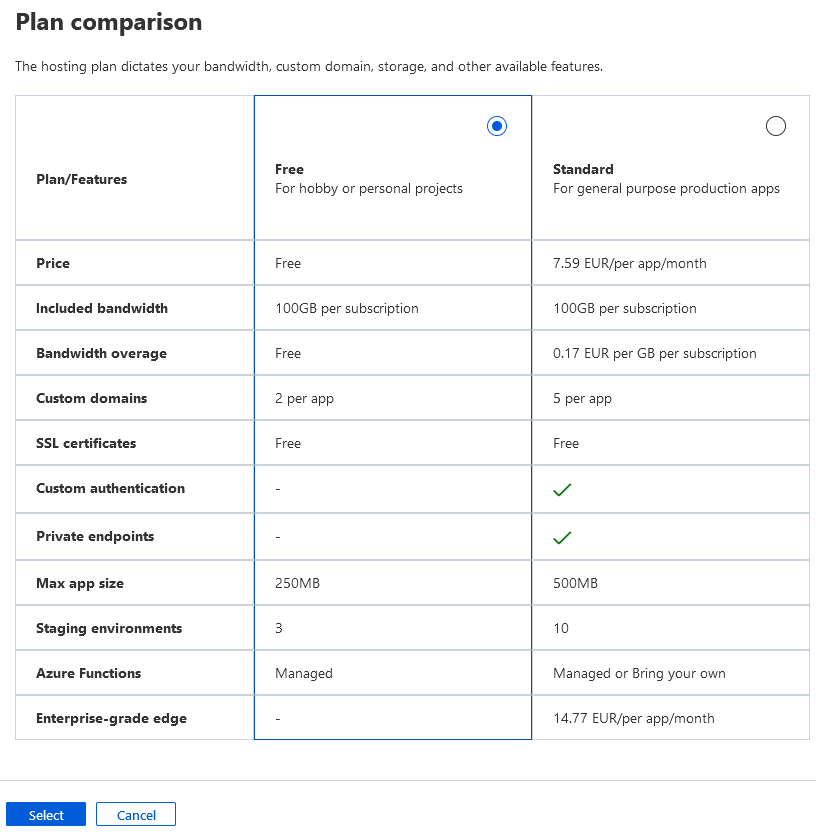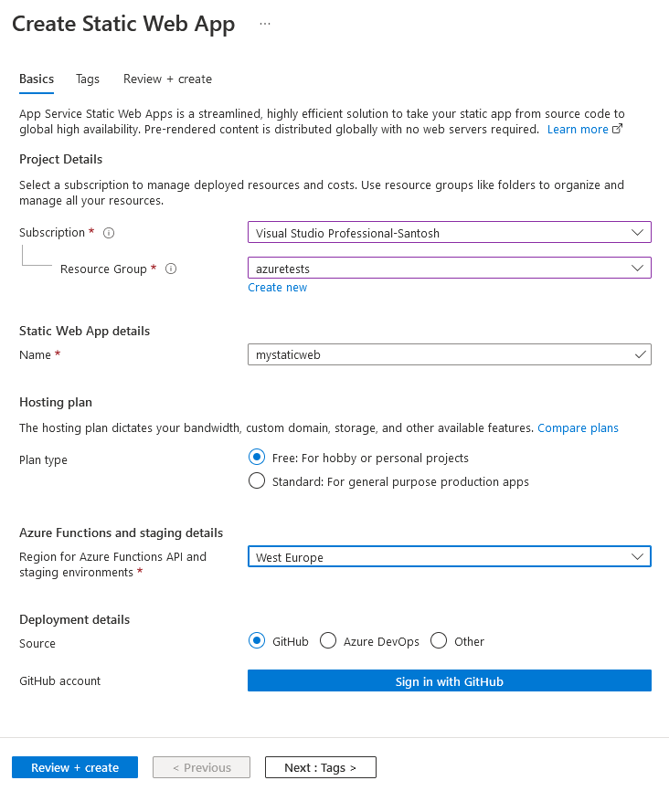 In this article, we have learnt how to create website and deploy static website to Azure Static Web App using the free plan. For the production version, you can get up to 5 domains and own functions. Also, the paid version support higher bandwidth.