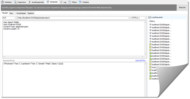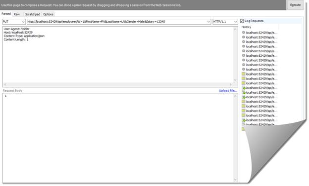 We have used this PUT Verb to update an employee in employee details. Let’s request a PUT request from fiddler.