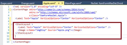 - <Label Text="Apple" VerticalOptions="Center" HorizontalOptions="Center" />