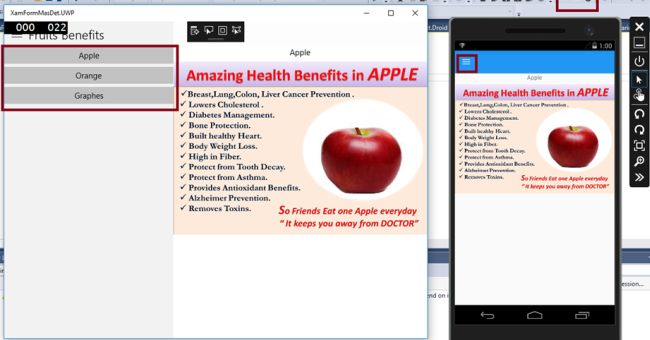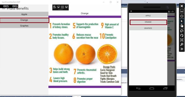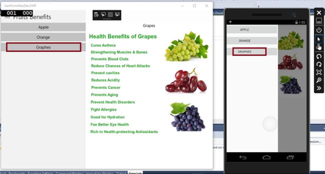 Now, you have successfully created and tested Fruit Benefits app, using master detail page in Xamarin.Forms Application for cross platform Application development, using Visual C# and Xamarin.