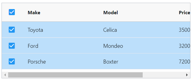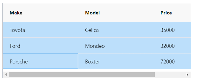 Select a row by clicking on it. Selecting a row will remove any previous selection. You can set Single row selection and Multiple row selection.