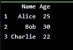 In this example, the create_data function returns a data frame with two columns: "Name" and "Age."