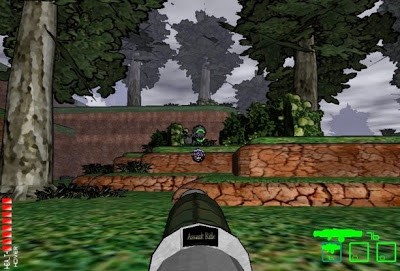 This perspective shows only game objects, e.g. guns, fire etc., giving player