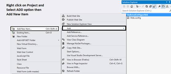 In this article, we going to implement bullet list as LinkButton. For the data, I am using LINQ TO SQL (DBML).