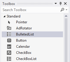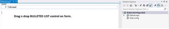 Double click on the newly added ASPX page. Drag and drop BulletList control from ToolBox.