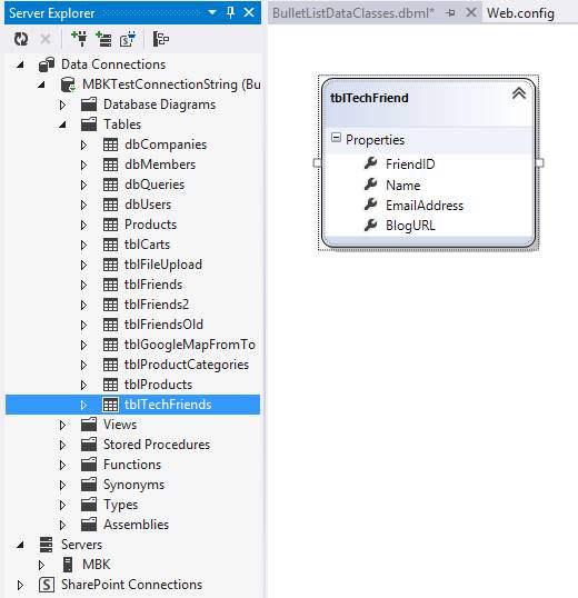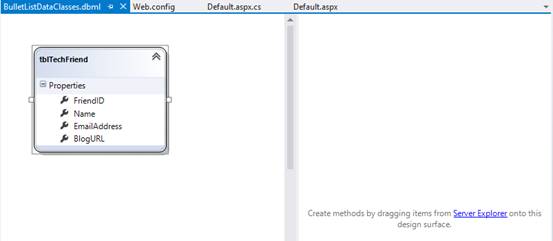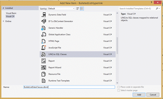 Select LINQ TO SQL Class named “BulletListDataClasses.dbml”
