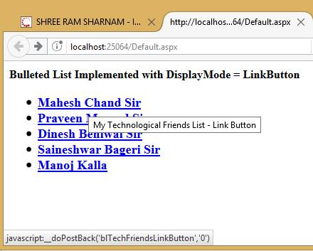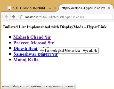 Now, we implement Bullet List with DisplayMode as HyperLink.